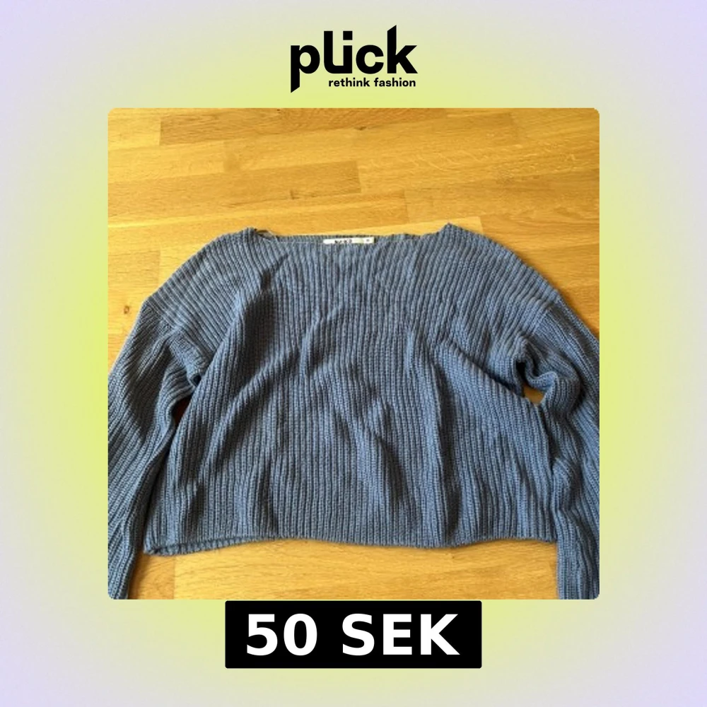 Säljer en blå stickad tröja från NA-KD med grov ribbad struktur. Tröjan har en avslappnad passform och långa ärmar, perfekt för lager på lager. Enkel och stilren design som funkar till många outfits.