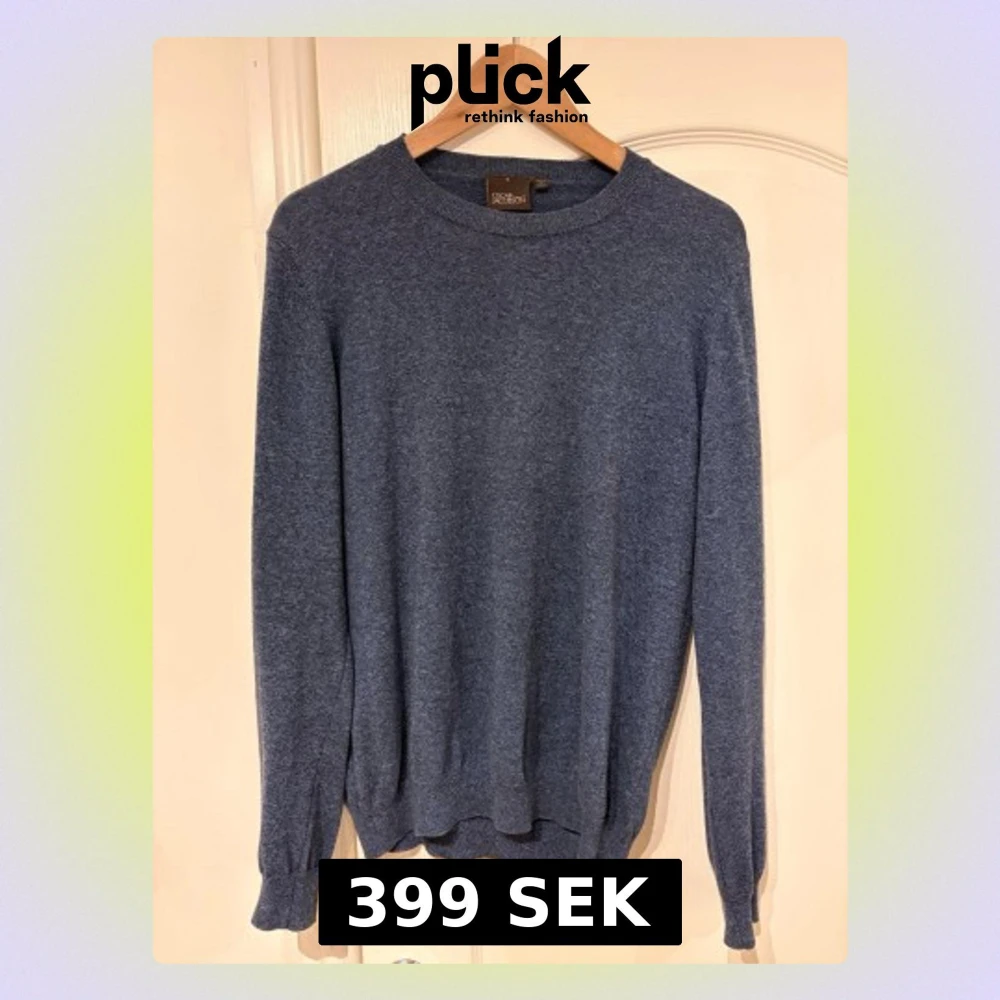 Mjuk och stilren blå stickad tröja från Oscar Jacobson. Använd fåtal gånger nypris ca 1500