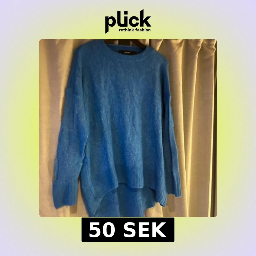 Mysig blå stickad tröja från Vero Moda i storlek S. Tröjan har en loose passform, rund halsringning och långa ärmar med breda muddar. Perfekt för lager-på-lager och chill dagar. Snyggt längre baktill för en avslappnad look.