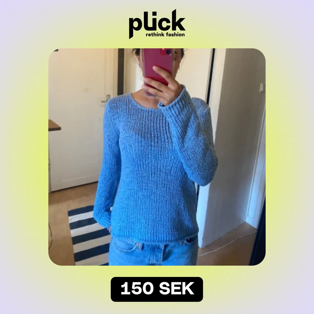 Väldigt gullig blå stickad tröja som jag säljer pga att den inte kommer till användning, perfekt för hösten
