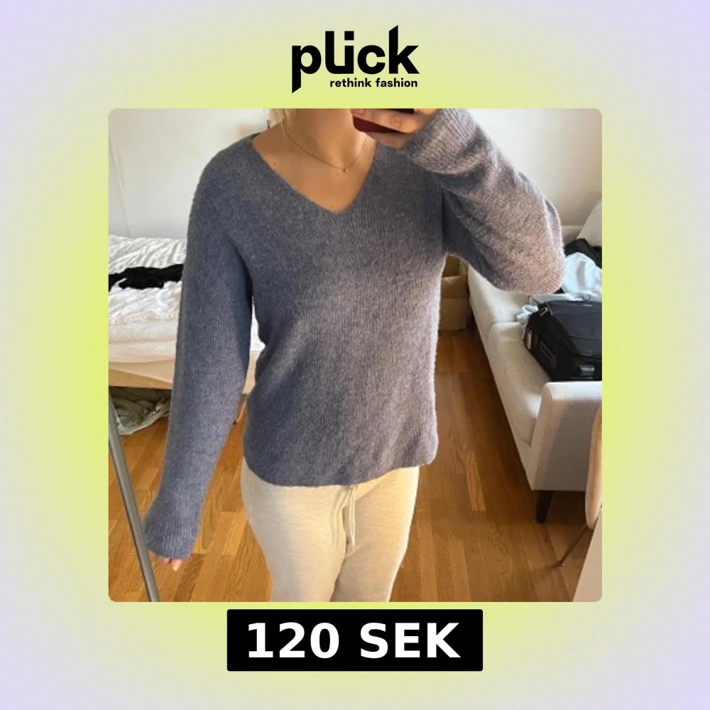 Blå stickad v-ringad tröja