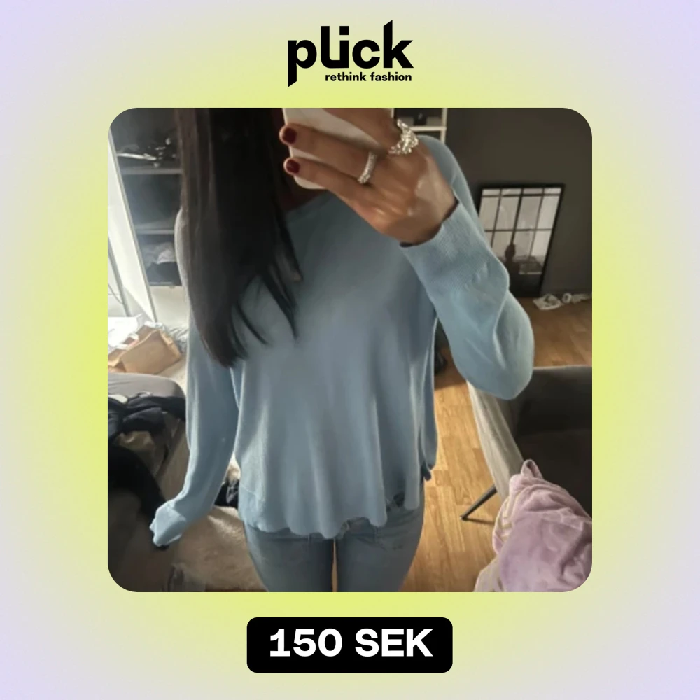 Säljer min jätte fina blåa stickade tröja då den inte kommer till användning, inga defekter🩷