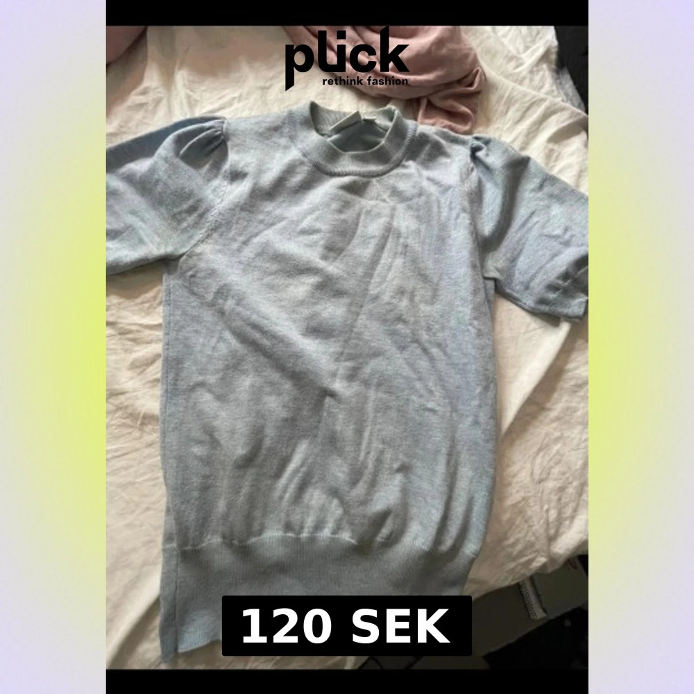 Ljusblå stickad kortärmad tröja