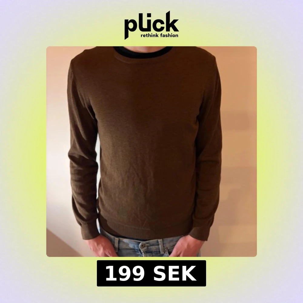 Snygg brun stickad tröja från Bläck i storlek M. Tröjan har rund halsringning och långa ärmar, perfekt för lager-på-lager. Materialet är mjukt och skönt, och den neutrala färgen gör den enkel att matcha med jeans.