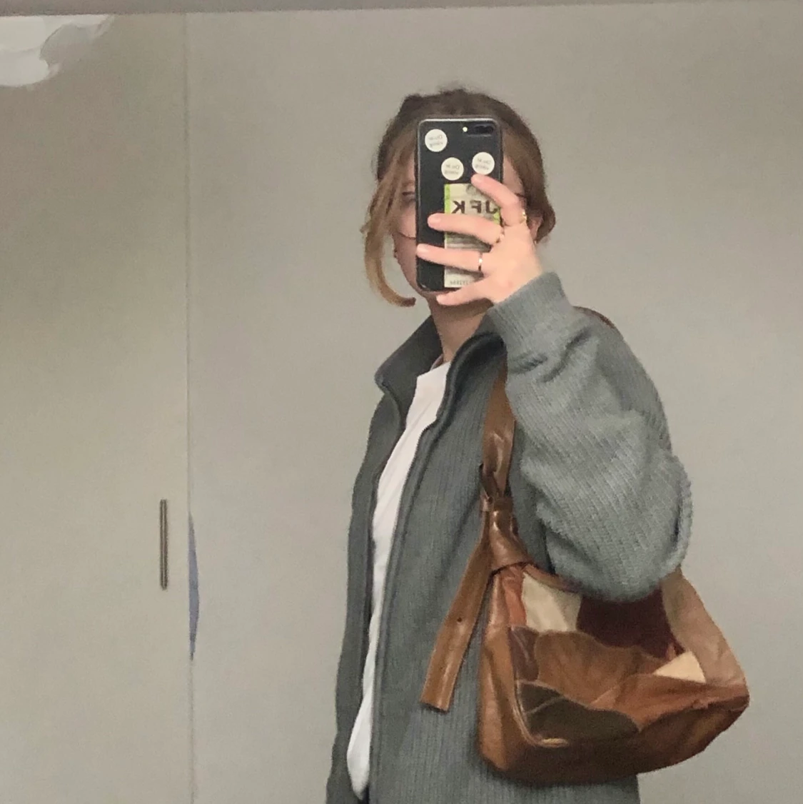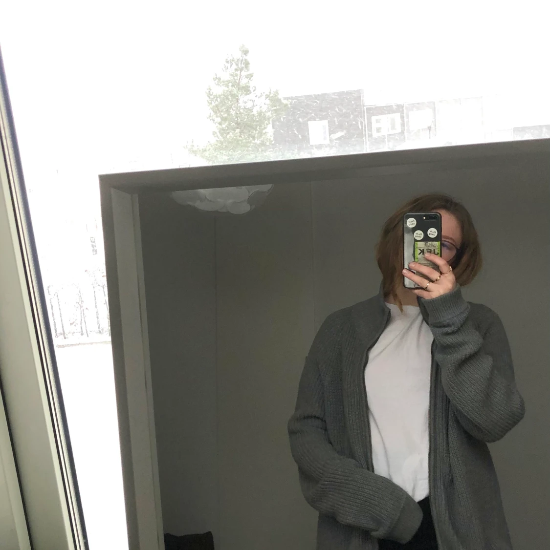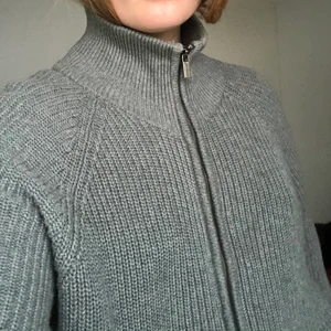 En fin, tjock, stickad kofta med hög krage. Den är ganska lång (även i ärmar) på mig som normalt har storlek M. Dragkedjan är lite trasig precis i början men det påverkar inte möjligheten att dra upp dragkedjan. Frank indkluderat i pris. (Öppen för att diskutera pris)