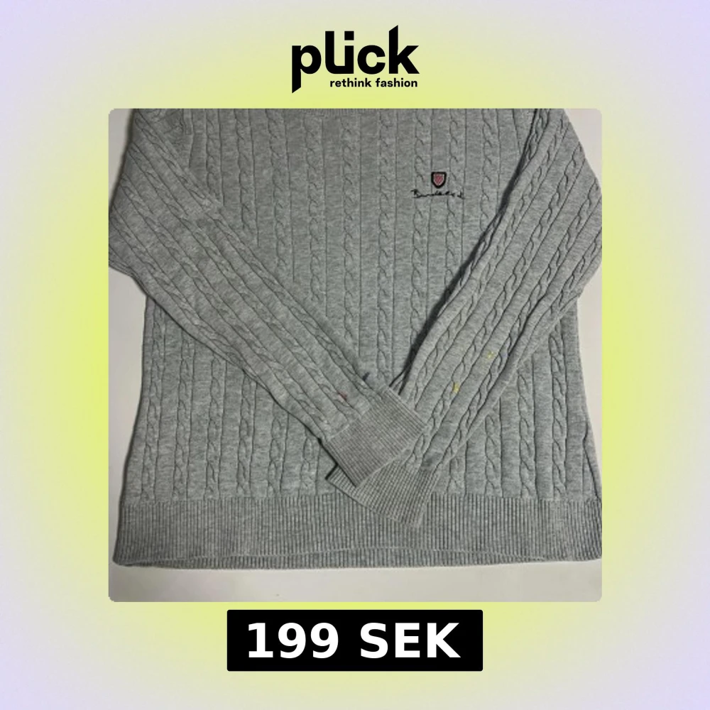 Kabelstickad grå tröja från Barbour med broderad logga på bröstet. Tröjan har rund hals, ribbade muddar och lång ärm. Perfekt för lager-på-lager och chill höst- eller vinterstil. Har lite färg på ärmarna men kan tvättas bort med noggran tvättning