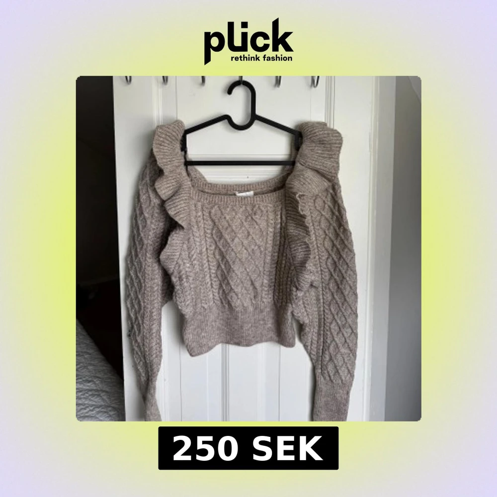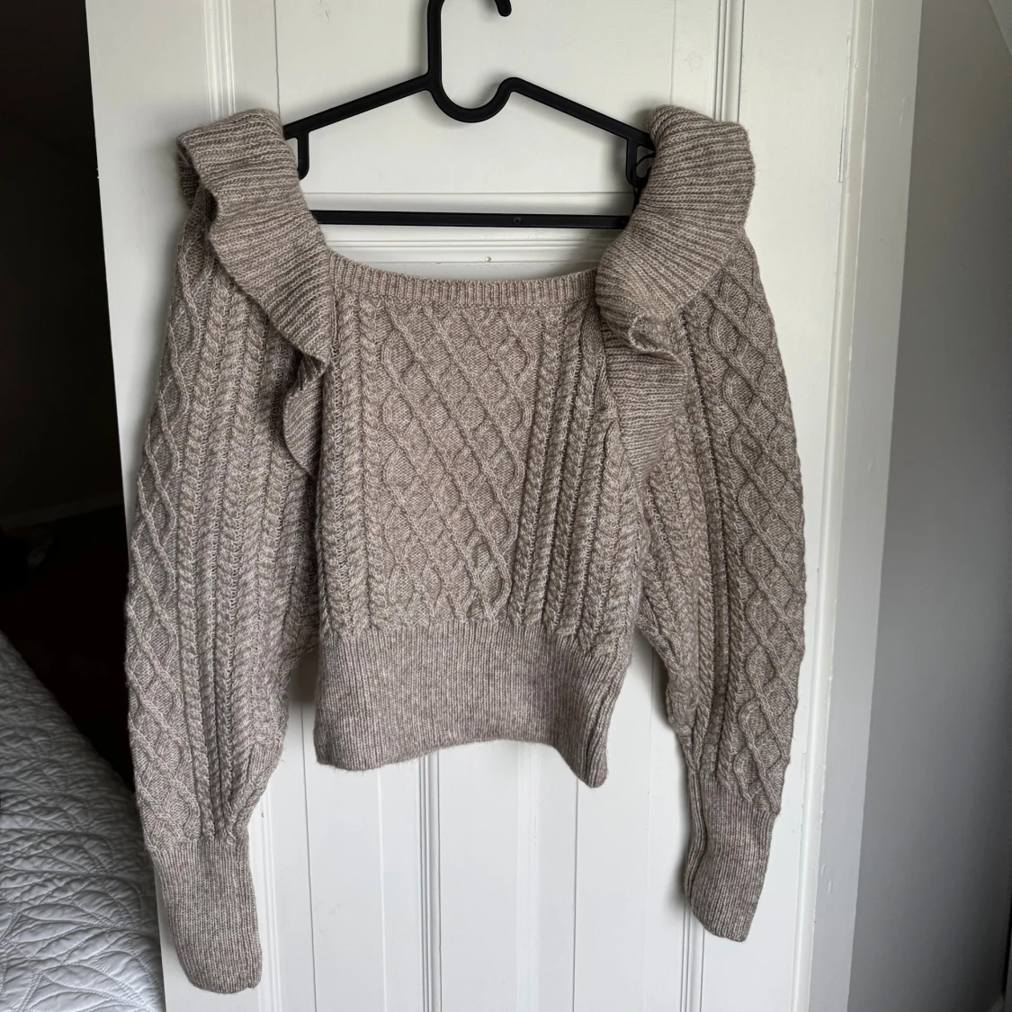 Beige stickad tröja med volang