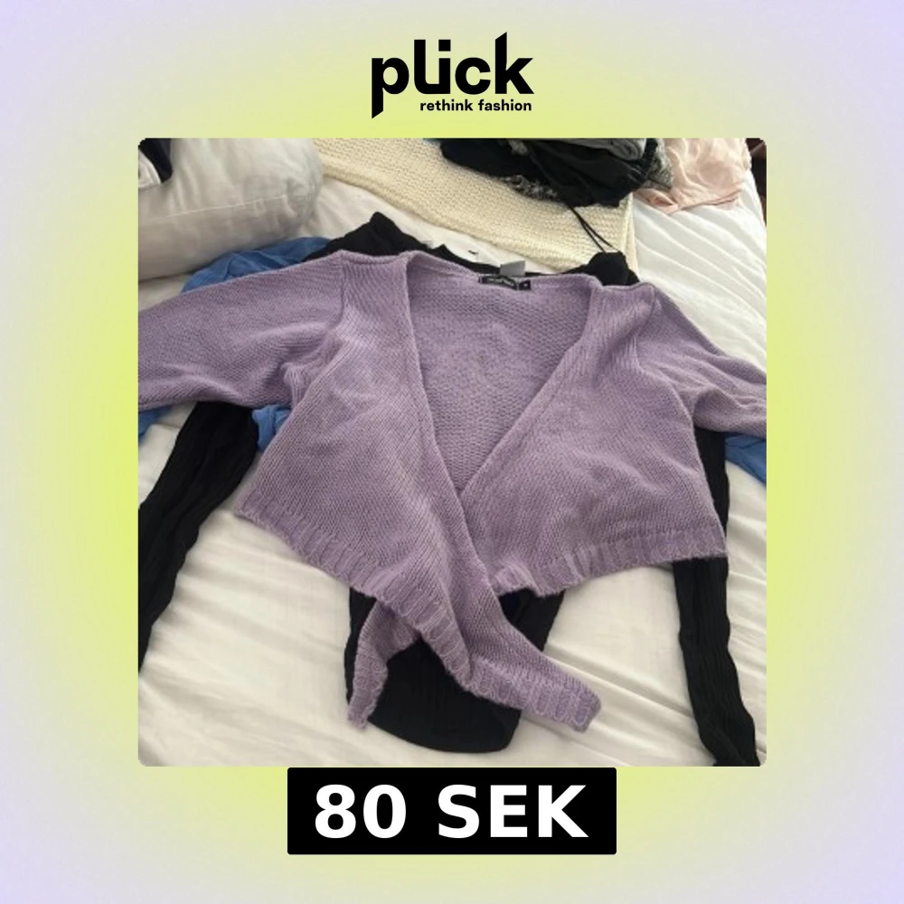 Superfin ljuslila omlottkofta från Boohoo i stickat material. Koftan är croppad med v-ringning och långa ärmar, perfekt att slänga över en topp eller klänning. Snygg ribbad kant nedtill och vid ärmslut.