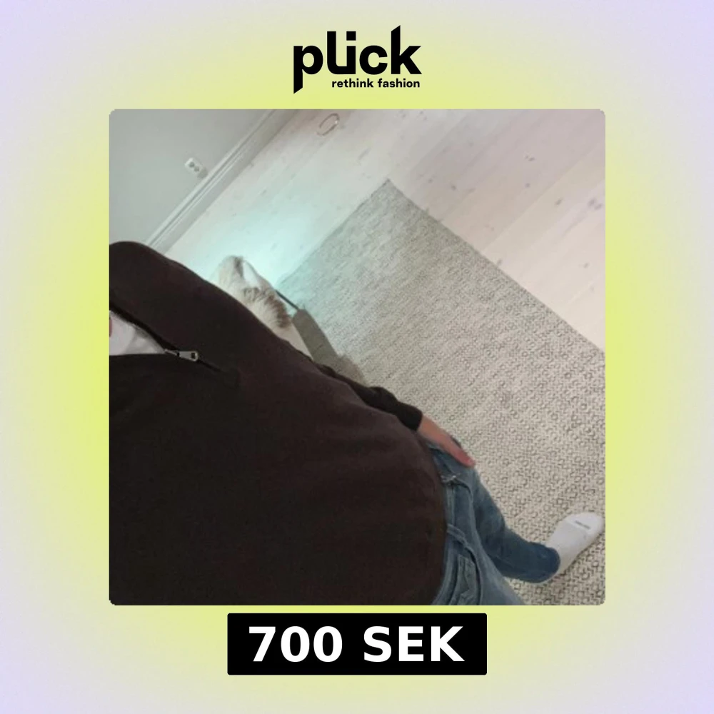 Mörkbrun stickad tröja från Oscar Jacobson med half zip och hög krage. Tröjan är långärmad och har ribbade muddar vid ärmslut och nederkant. Kvaliteten är bra förutom att det börjat skapas ett hål under vänster arm. Storleken är S. Originalpris 1599 så kom gärna med prisförslag!!!