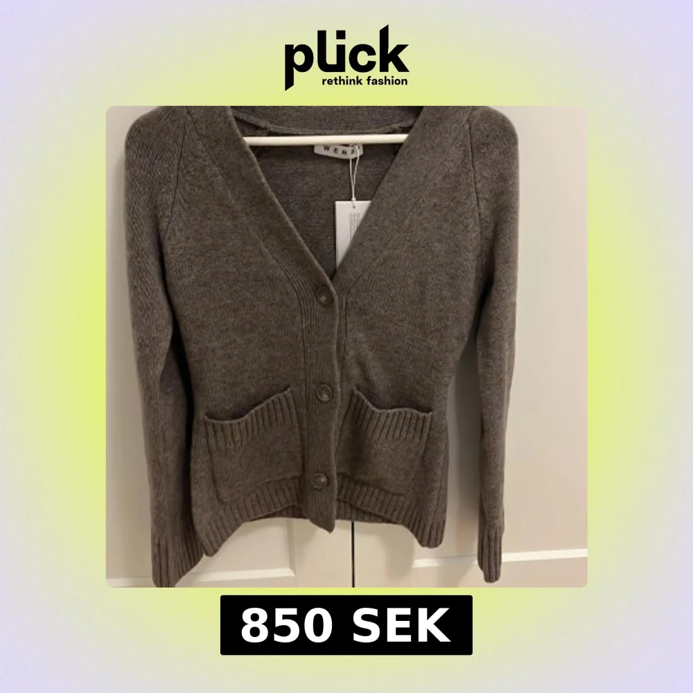 Mysig brun kofta från Wera i storlek XS. Koftan har v-ringning, tre knappar framtill och två ribbstickade fickor. Materialet är stickat och känns skönt mot huden. Perfekt att slänga på sig när det är lite kyligt ute. Helt oanvänd och splitter ny , passade it mig så drf säljer jag 🥹
