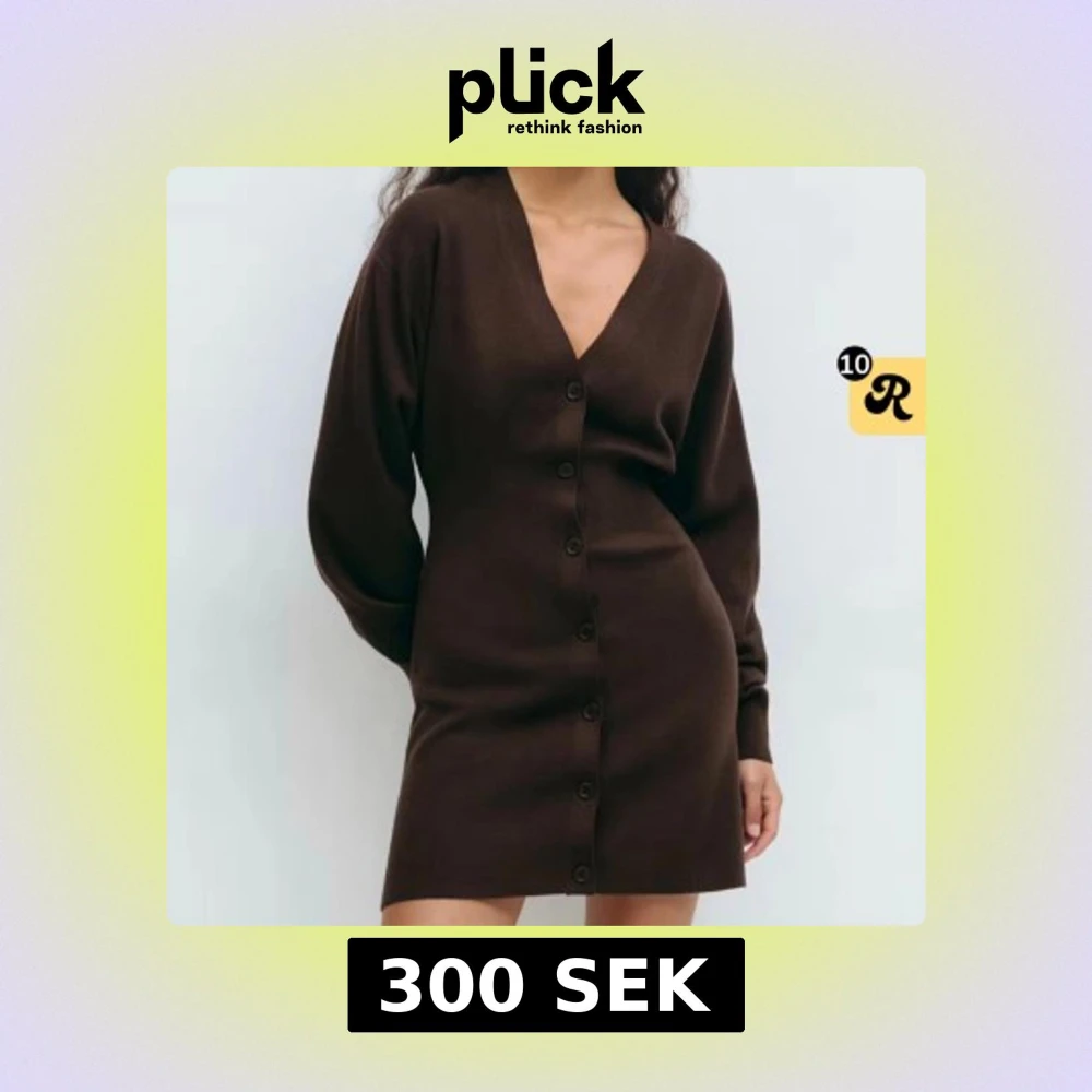 Mysig brun stickad klänning med v-ringning och långa ärmar. Från Gina strl xs. Aldrig använd. Nypris 599 säljer för 300 kr❤️