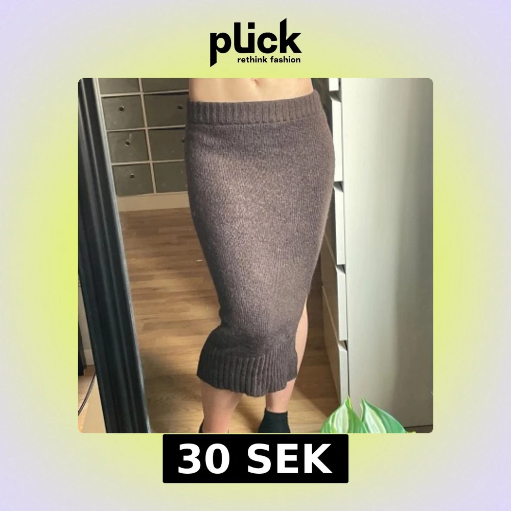 Mysig brun stickad långkjol från Gina Tricot i storlek S. Kjolen har ribbad midja och nederkant samt en liten slits på sidan för extra rörelsefrihet. Perfekt för dig som gillar en chill och snygg look under kallare dagar.