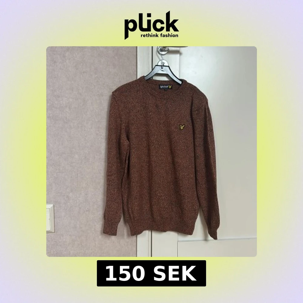 Säljer en snygg brun stickad tröja från Lyle & Scott med deras ikoniska logga på bröstet. Tröjan har en klassisk rund hals och långa ärmar, perfekt för kyligare dagar.🤗