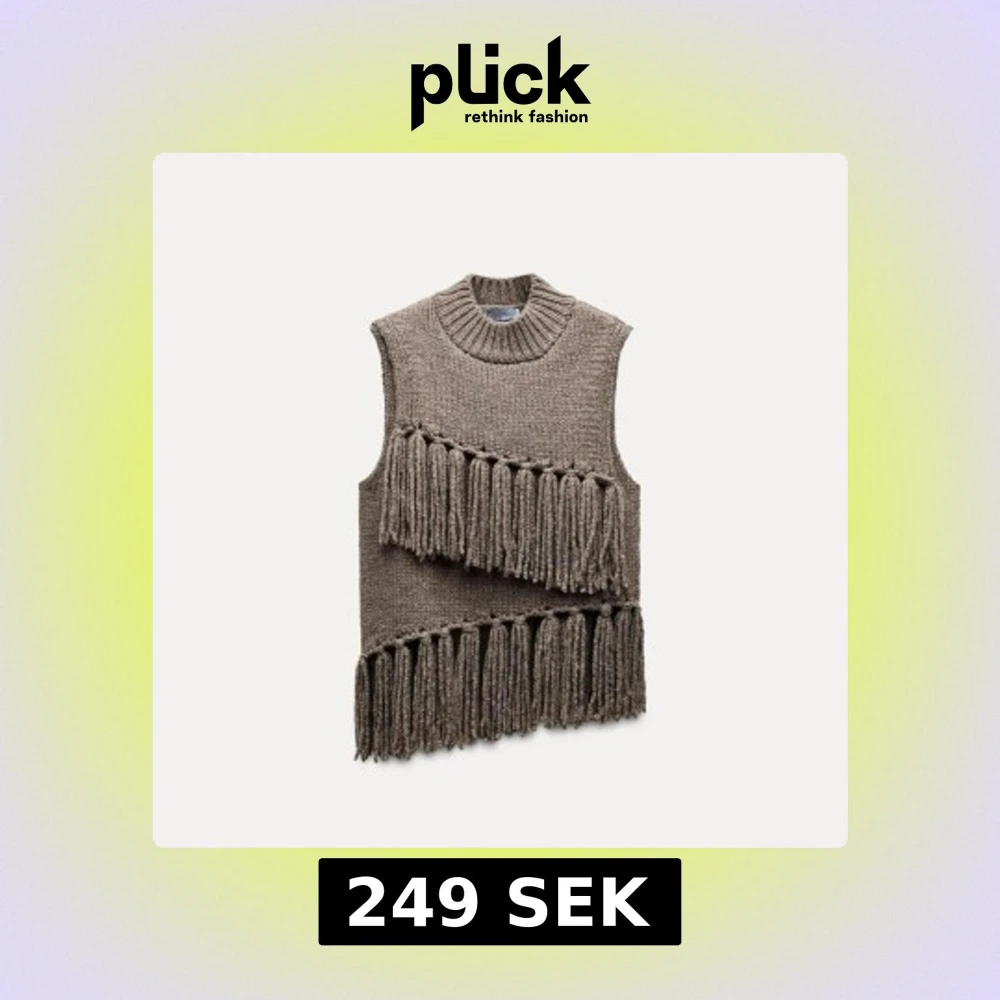 Brun stickad tröja med fransar. Tröjan är endast använd en gång och är i bra skick