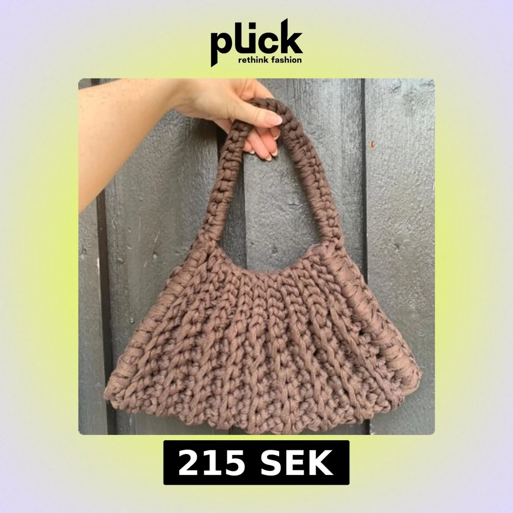 Säljer en brun virkad axelväska. Väskan har ett grovt och rejält handtag som gör den enkel att bära. Perfekt för dig som gillar unika accessoarer med en cozy vibe.