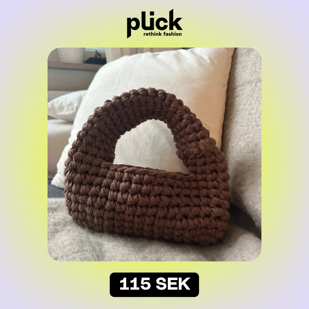 Säljer en superfin brun stickad handväska i ett chunky garn. Perfekt för höst och vinter med sin mysiga och unika design. Väskan har ett handtag och är i ett kompakt format, idealisk för att bära med sig det viktigaste. Passar både till vardags och speciella tillfällen.