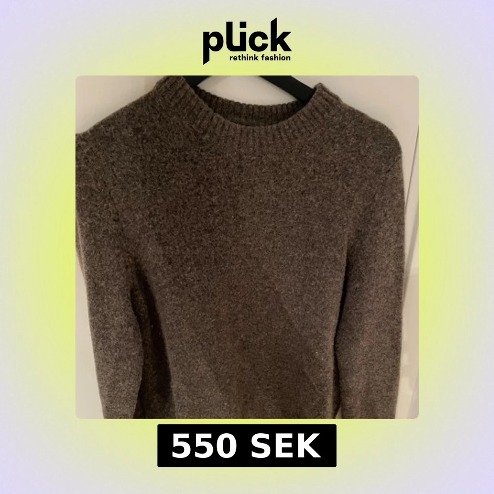 Mysig brun stickad tröja med rund hals och ribbade muddar. Tröjan har en slim passform och är tillverkad i ull, perfekt för kyliga dagar. Enkel och stilren design som funkar till jeans eller andra byxor.