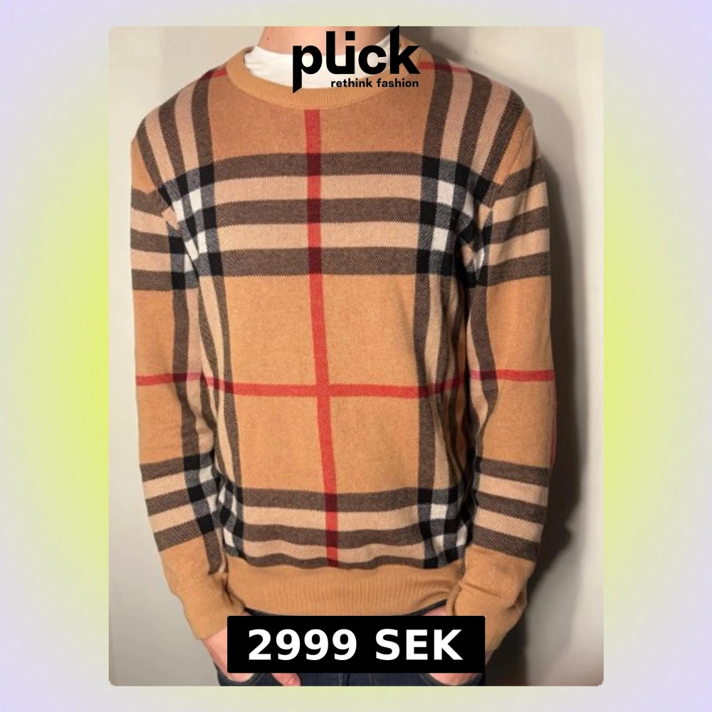 Säljer en snygg beige tröja från Burberry med klassiskt rutmönster i svart, vitt och rött. Perfekt för dig som gillar stilrena och ikoniska plagg med lyxig känsla. Passar också storlek M Grund värde 11 000kr