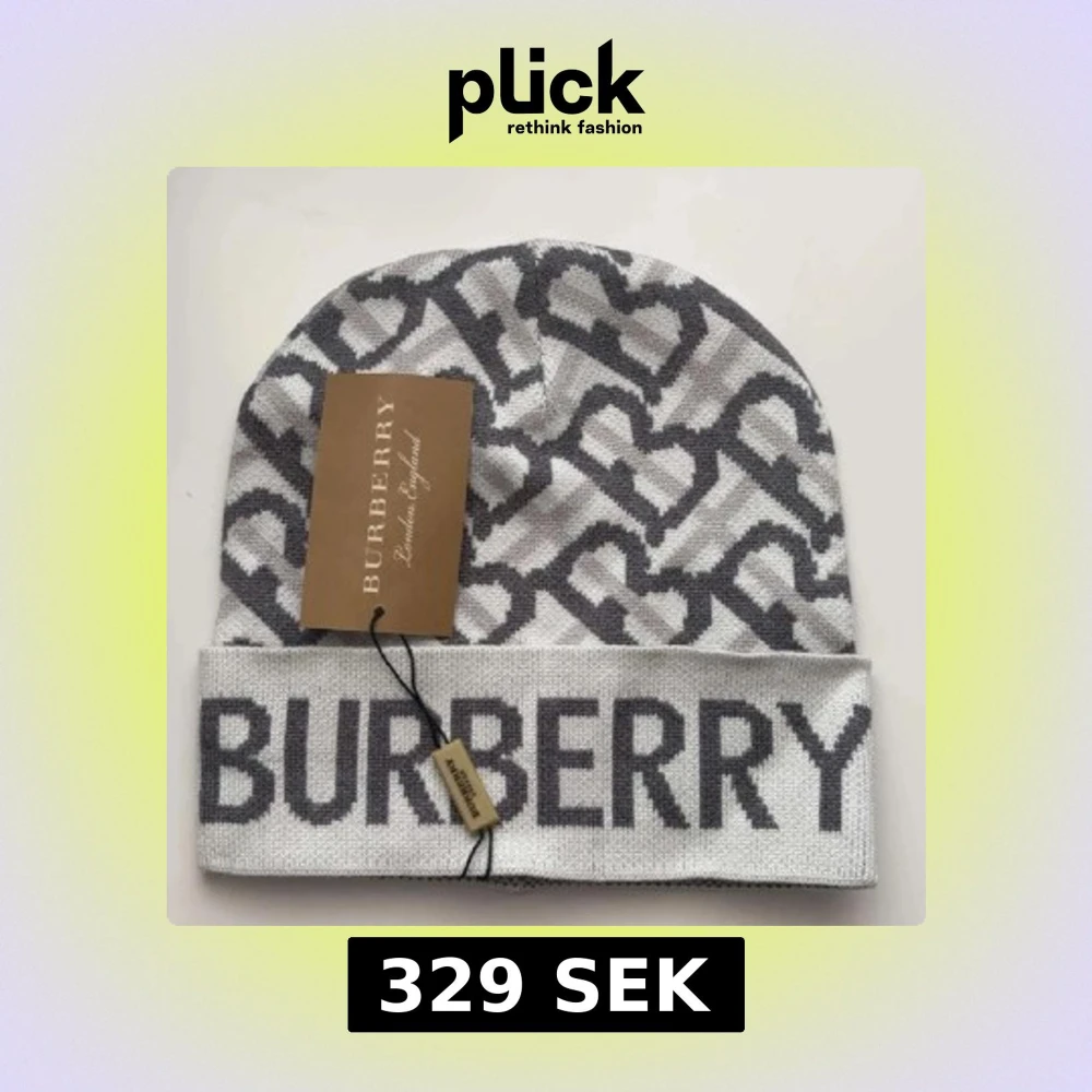 Snygg gråvit mössa från Burberry med stort logotyptryck framtill och stickat hjärtmönster i mörkgrått. Mössan har uppvikt kant och är tillverkad i mjukt stickat material. Perfekt för att ge din outfit en exklusiv touch.