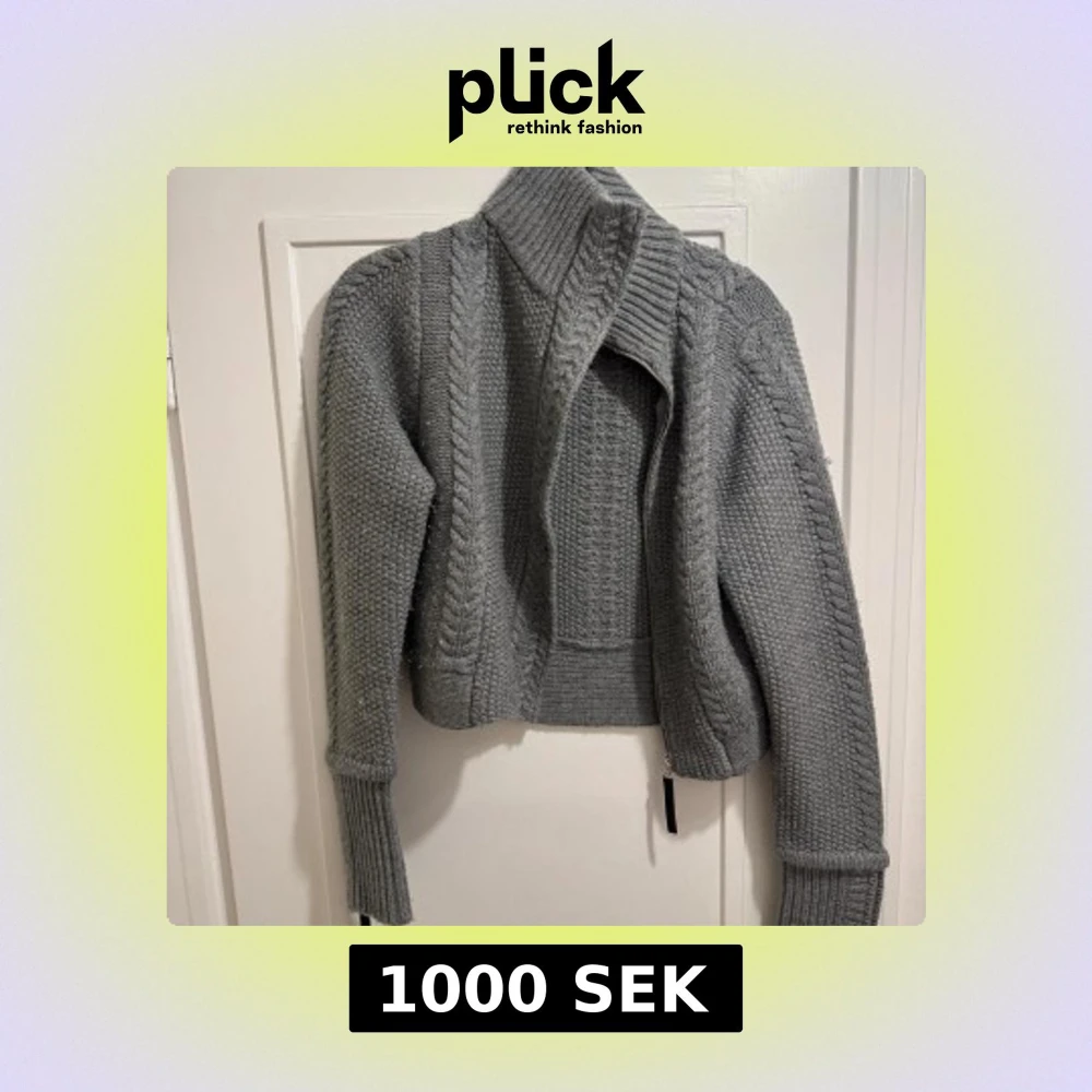 Säljer en stilren grå stickad kofta från Malene Birger. Koftan har en dragkedja framtill och ett snyggt flätmönster. Den är perfekt för kyliga dagar med sin höga krage och långa ärmar. 100% ull . Passar flesta storlekar