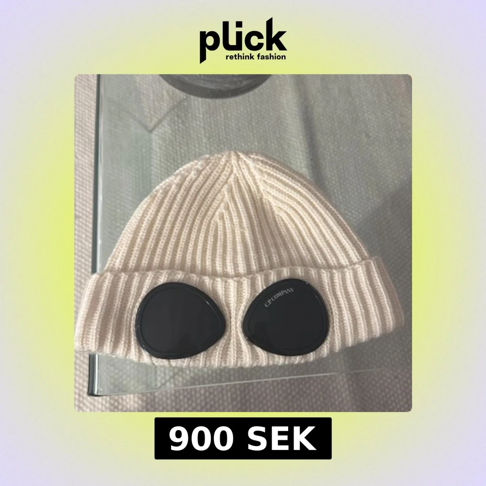 Vit ribbstickad mössa från C.P. Company med klassiska svarta goggles framtill. Mössan är i grovstickad bomull och har en uppvikt kant. Perfekt accessoar för att sticka ut och hålla värmen under kyliga dagar. Ny haft den i en vecka kvitto finns