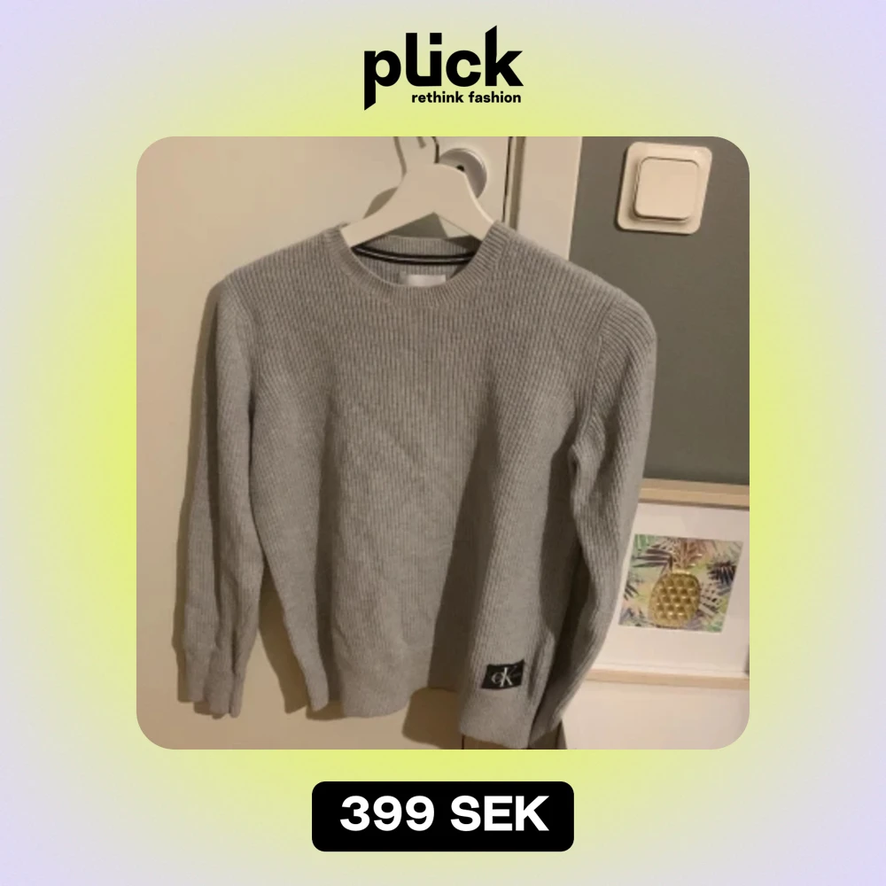 Säljer en snygg och bekväm grå stickad tröja från Calvin Klein Jeans. Tröjan har en normal passform och är långärmad, perfekt för höst och vinter. Den är tillverkad i ett mjukt och skönt material som håller dig varm. Tröjan har en enkel design med en liten CK-logga på framsidan. Perfekt för både vardag och fest!