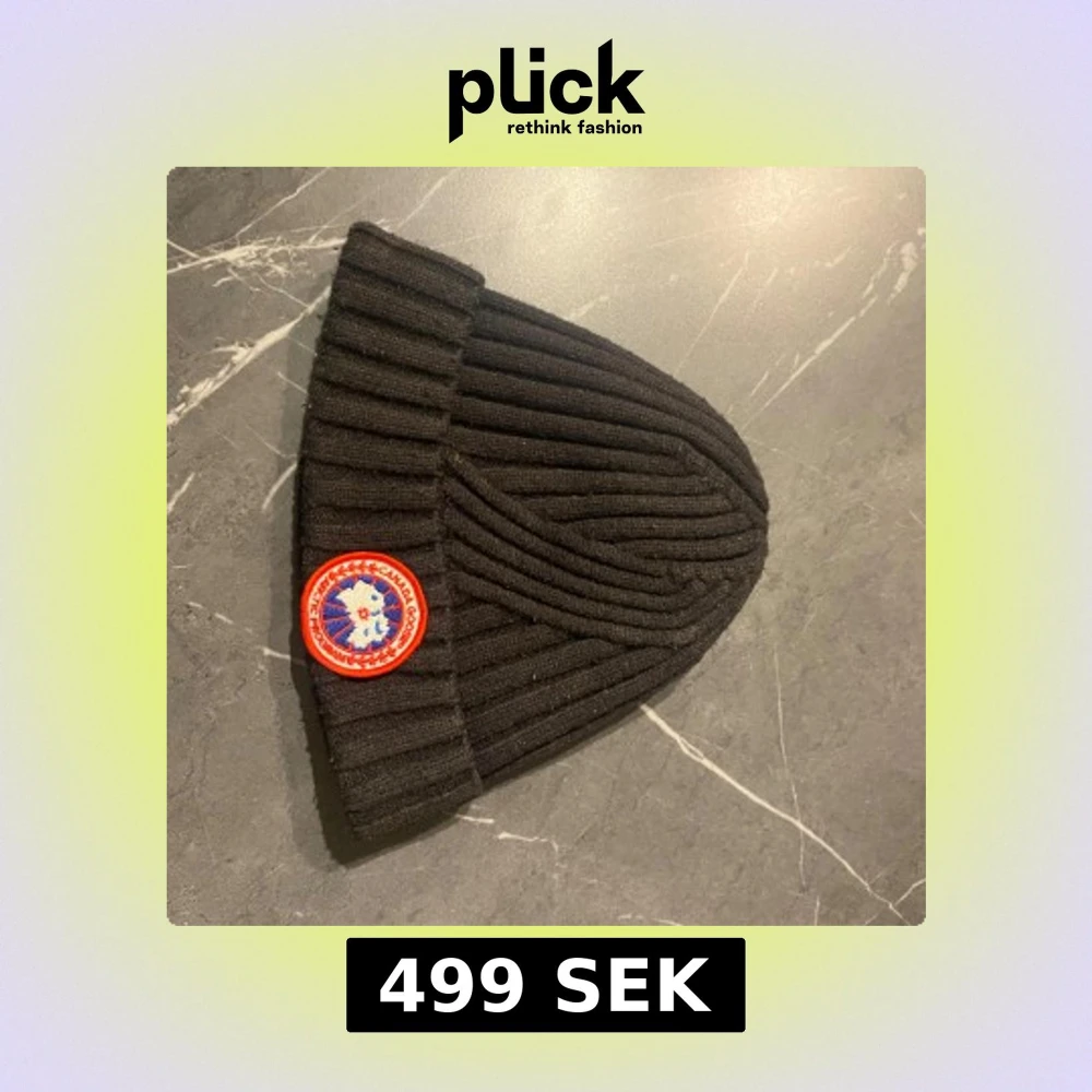 Svart ribbstickad mössa från Canada Goose med klassisk rund logotyp-patch framtill i rött, vitt och blått. Tjockt uppvik och stilren design som passar perfekt när det är kallt ute. Materialet är mjukt och värmande.