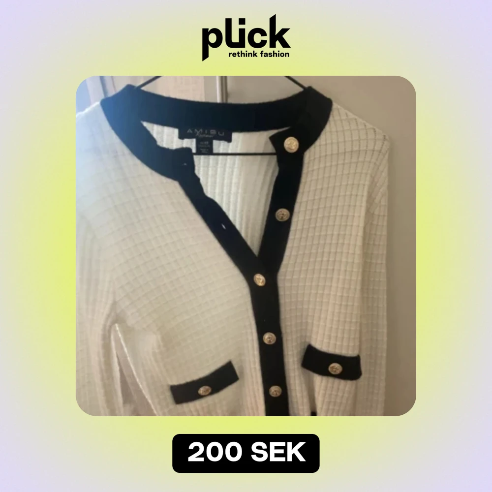 NÀstan aldrig anvÀnd. JÀtte fin cardigan med guldknappar och svarta detaljer. Stickad och materialet Àr jÀtte mjukt!!