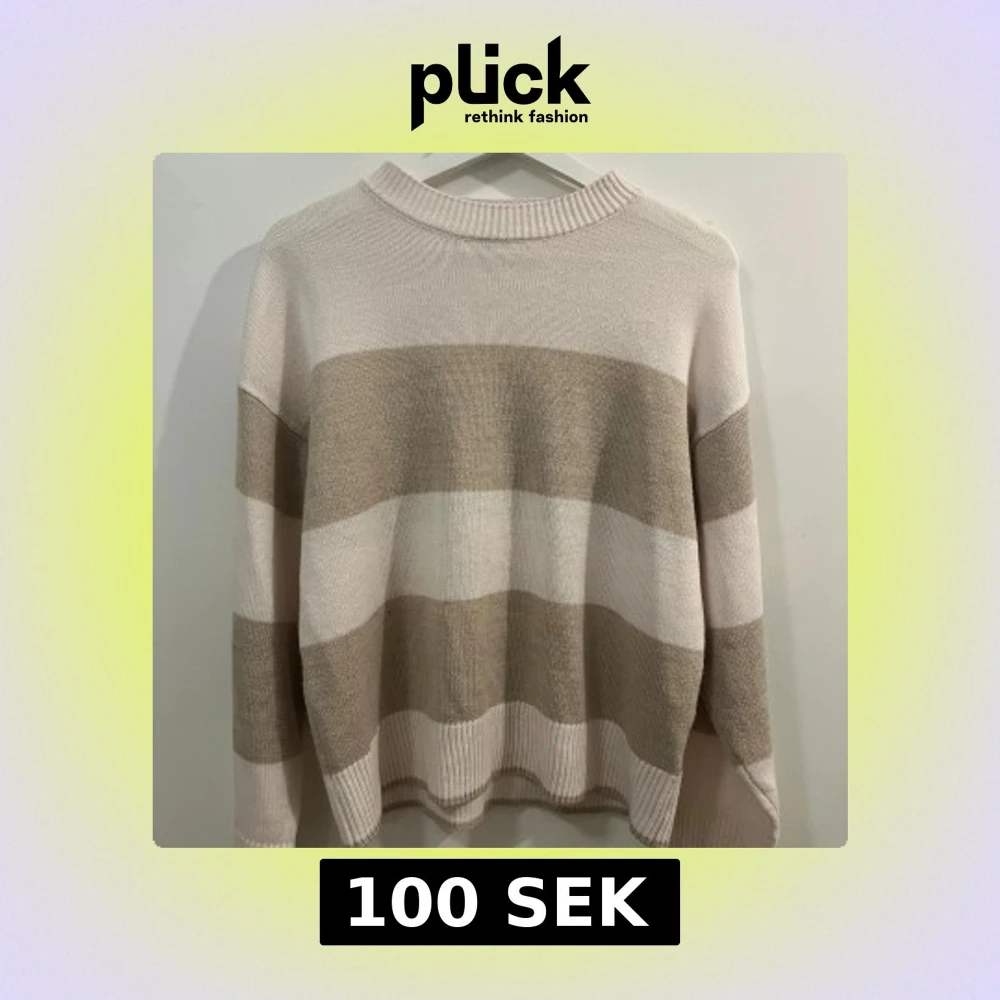 Säljer en snygg beige och vit randig tröja från H&M Divided. Tröjan är stickad med långa ärmar och har en bekväm passform.