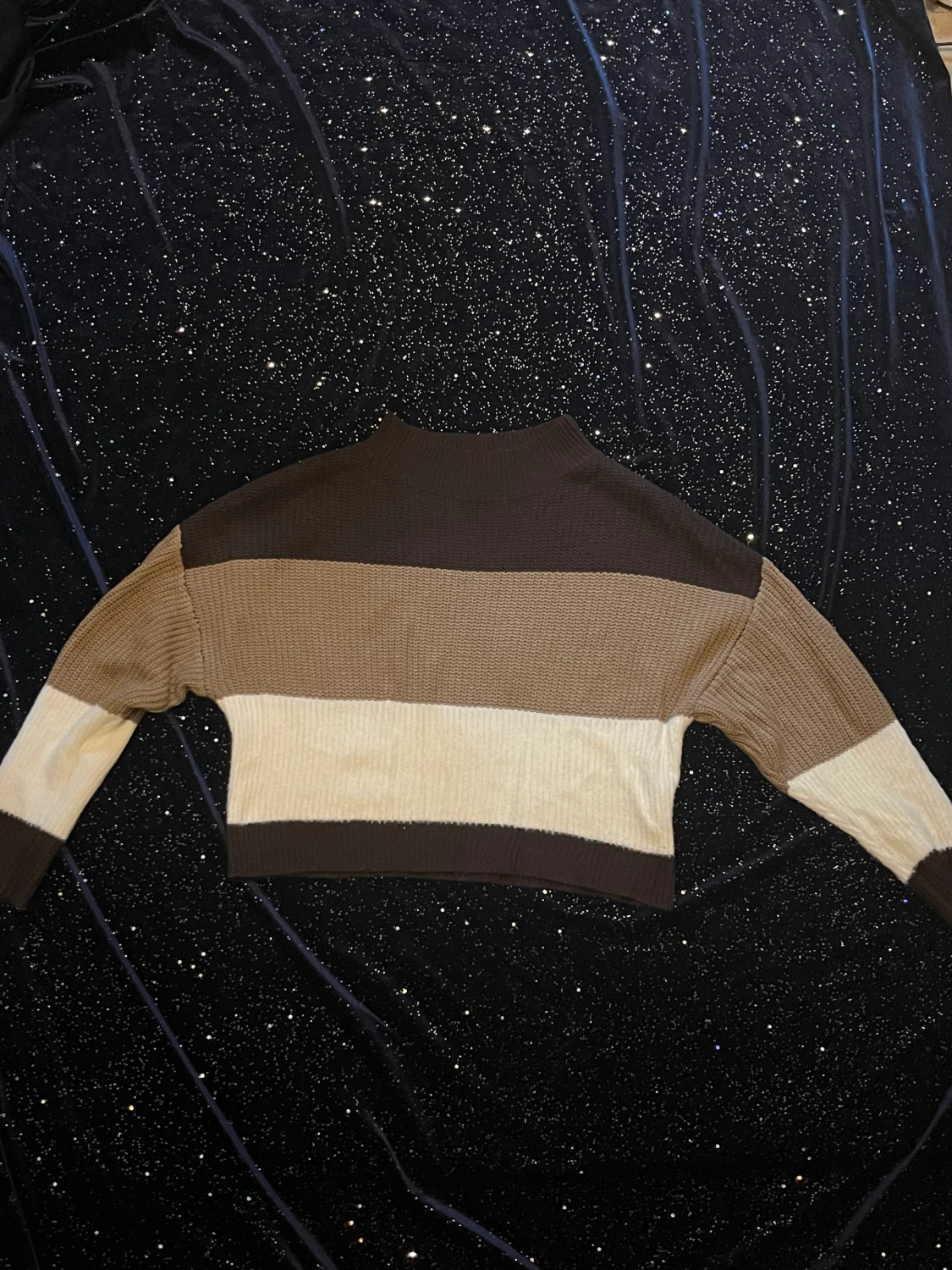 brown beige white knitted sweater with a higher neck line, cute and cozy, very comfortable