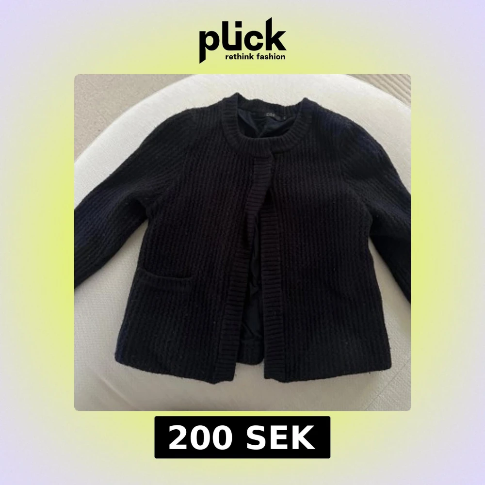 Säljer en mörkblå stickad kofta från COS. Koftan har en rund halsringning. 100% ull.