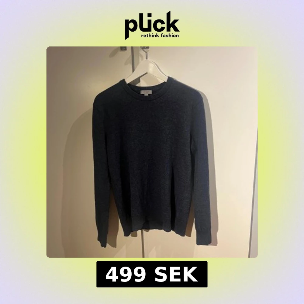 Snygg mörkblå stickad tröja från COS i storlek L. Tröjan har rund halsringning, ribbade muddar och långärmad passform. Perfekt för dig som gillar enkel och stilren design med en chill vibe. 25% yak-ull. Har en liten lagning på armen, men inget som märks vid användning.