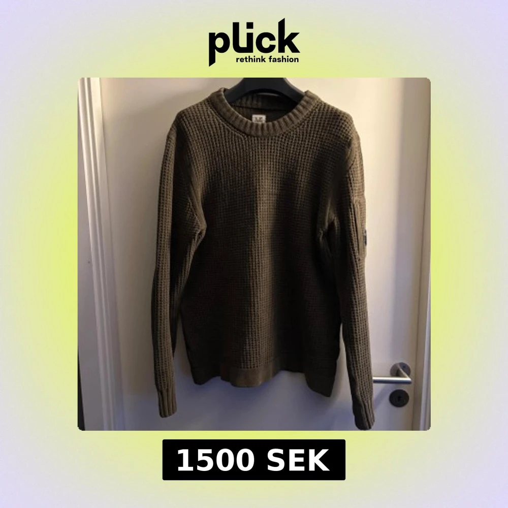 Säljer en olivgrön stickad tröja från C.P. Company. Tröjan har en grovstickad textur och långa ärmar. Perfekt för kyligare dagar med sin stilrena design och bekväma passform.