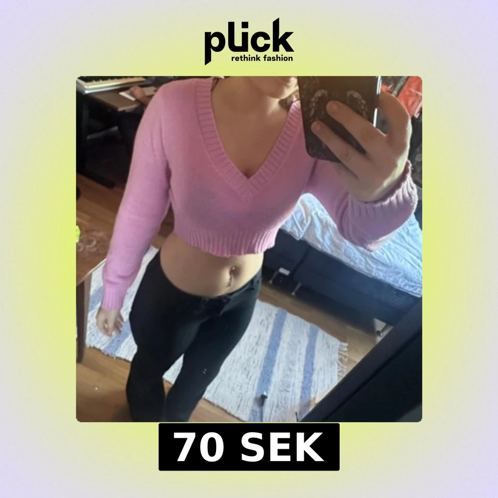 Säljer en croppad stickad tröja i ljusrosa med v-ringning och långa ärmar. 💕