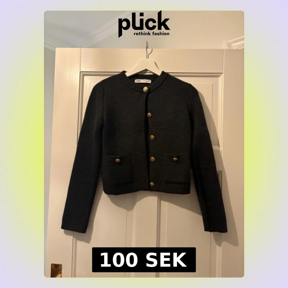 Snygg mörkgrå kofta med jättefina guldknappar från märket Zara i storlek s. Den har två jättefina fickor framtill och är i en lite kortare modell. Den är bara använd en gång så i jättebra skick⭐️Den har en jättefin passform, är i bra material och kvalité. Den är dessutom enkel att styla och passar till allt👍🏻Skriv om funderingar, lämna gärna omdöme om köpt och priset kan diskuteras😊
