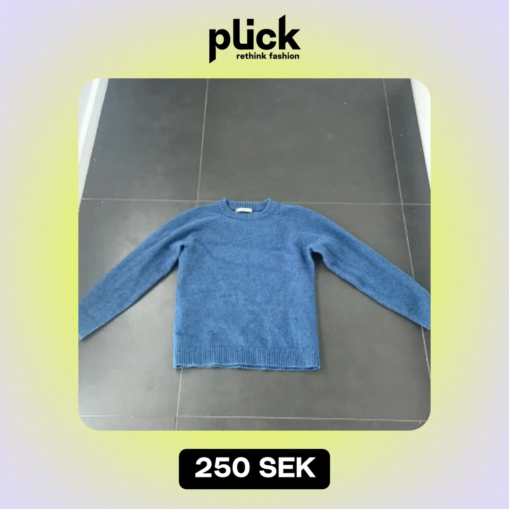 Varan är en blå stickad tröja med hyfsat bra skick. Den har använts några få gånger och tyvärr blivit tvättad i för hög värme och krympt litegrann. Funkar för 9-10 åringar.