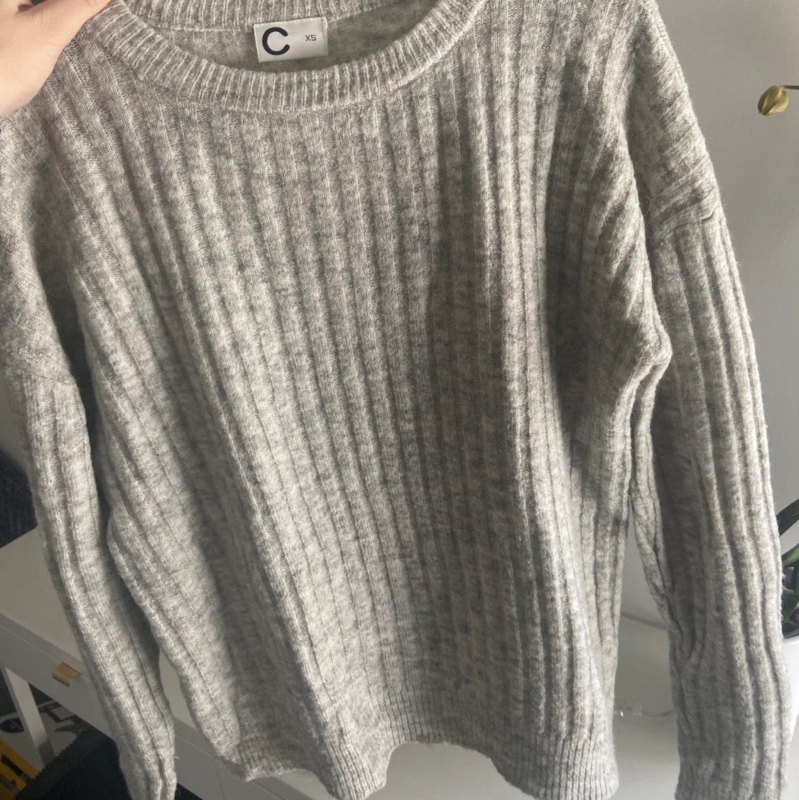 Stickad grå tröja som passar till allt. Köpt för kanske 2år sen men knappt använd då jag har många andra liknande. Köpt för 249kr på Cubus. Storlek xs men passar s.