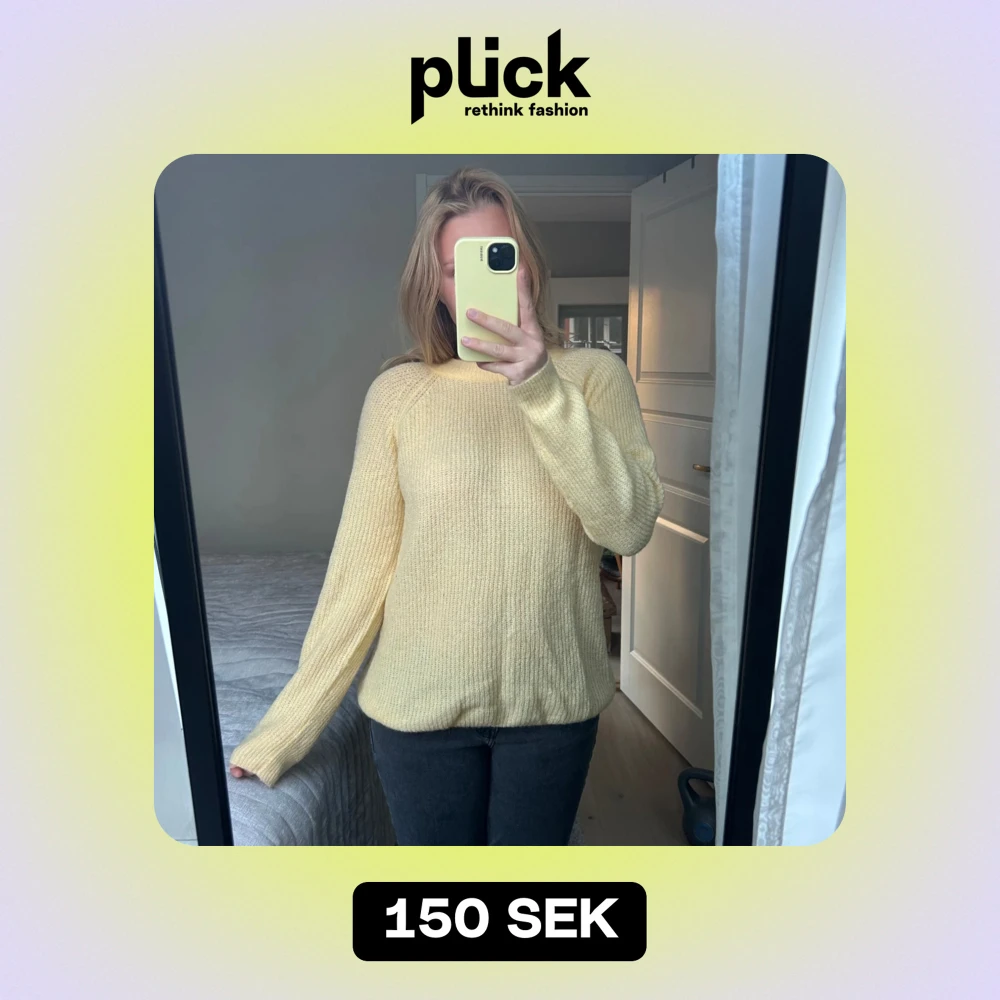Mysig gul stickad tröja med långärmad design. Perfekt för kyligare dagar och ger en härlig färgklick till garderoben. Enkel och stilren, passar till många olika outfits.