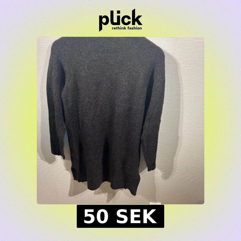 Säljer en stilren mörkgrå stickad tröja med långa ärmar. Perfekt för kyligare dagar med sin mjuka och bekväma passform. Tröjan har en enkel design som gör den lätt att matcha med olika outfits. Sticks lite.