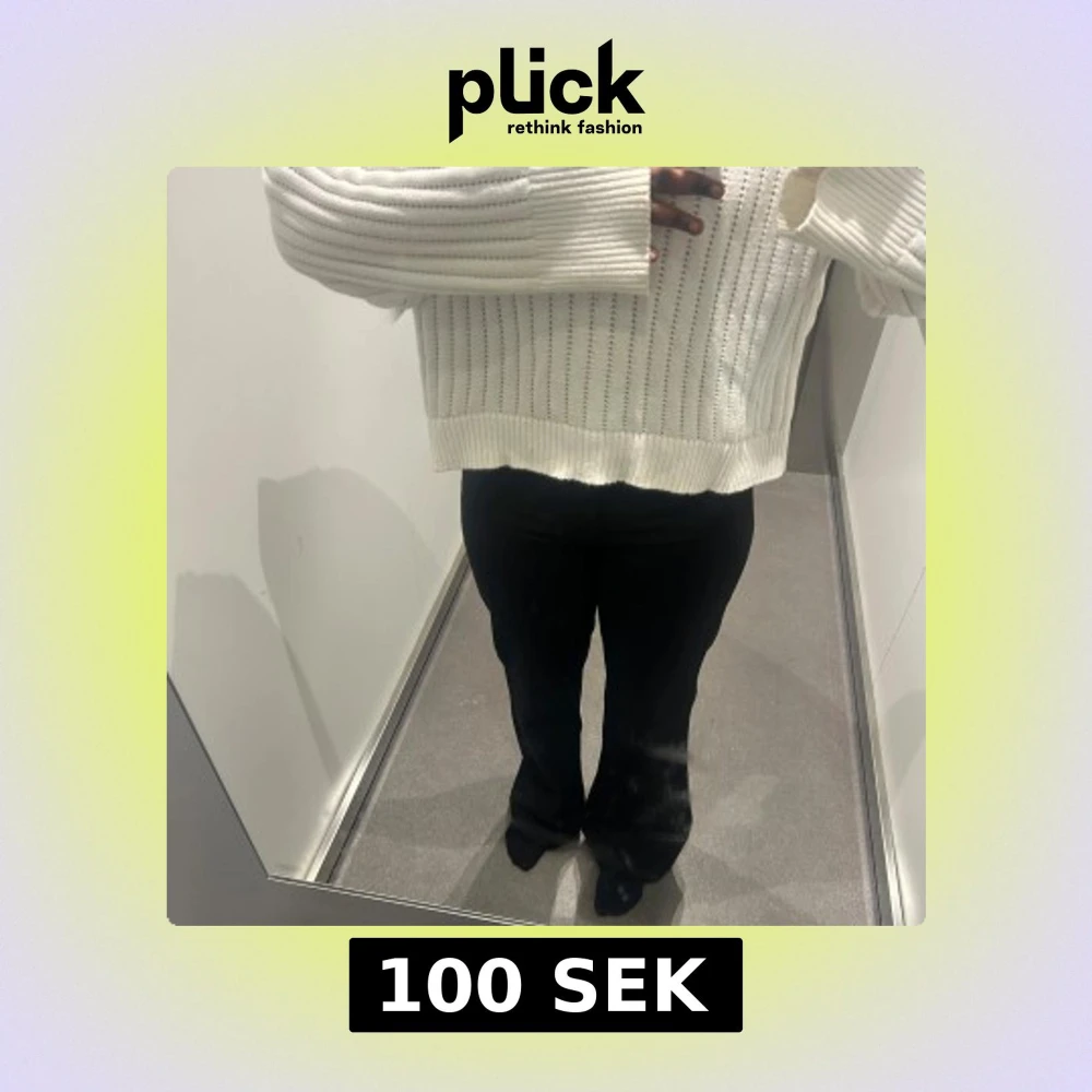 Säljer en vit stickad tröja från C i storlek XL. Tröjan har ett snyggt ribbat mönster, långa ärmar och breda muddar. Perfekt för lager-på-lager och chill vibes. Passformen är lite loose och den är supermjuk och skön.