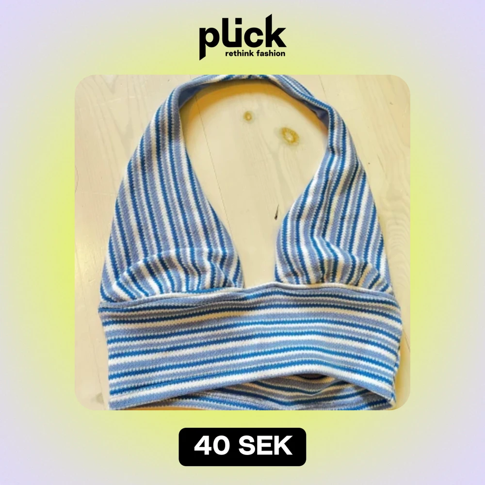 En randig halterneck topp i blått och vitt. open back och stickad!