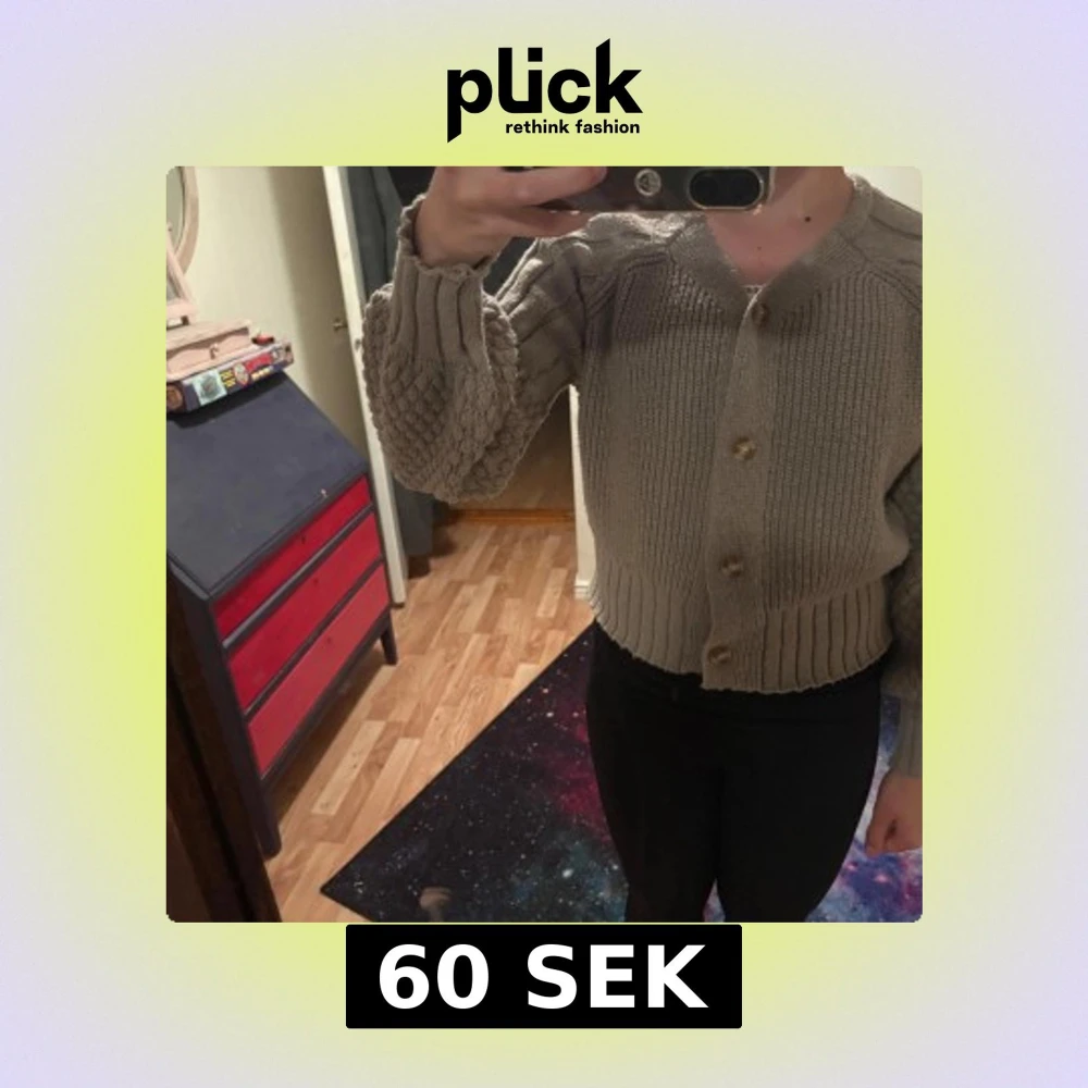 Säljer en beige stickad kofta från SHEIN med grov ribbstickning och unika ärmar med struktur. Koftan är croppad, har långa ärmar och knäpps med fyra knappar framtill. Perfekt för lager-på-lager och snygg till både jeans och kjol. Har använt denna några gånger för ett par år sedan!
