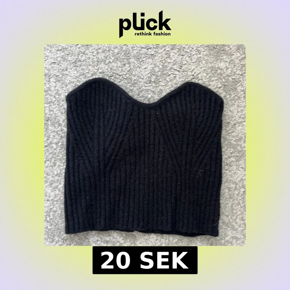 Säljer en svart ribbad tubtopp från SHEIN. Toppen är stickad och har en snygg hjärtformad överkant. Perfekt att styla med jeans eller kjol för en trendig look.