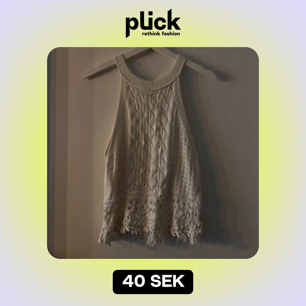 Säljer en superfin vit stickad topp från Holly & Whyte by Lindex. Den har ett snyggt mönster och är ärmlös med en liten knappdetalj i nacken. Toppen har en luftig och bekväm passform