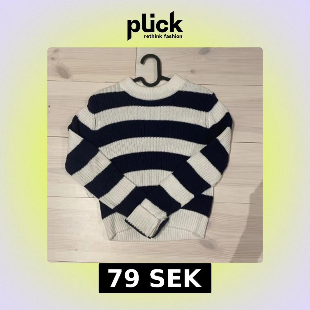 Säljer en ribbstickad tröja från 157 i svart och vitt med breda horisontella ränder. Tröjan har lång ärm och rund halsringning. 😋