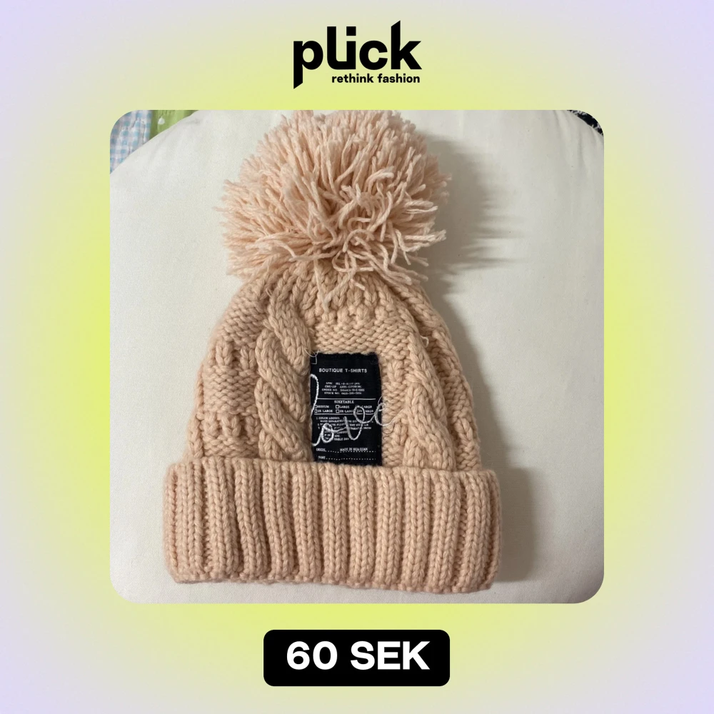 Beige/rosa stickad mössa med tofs