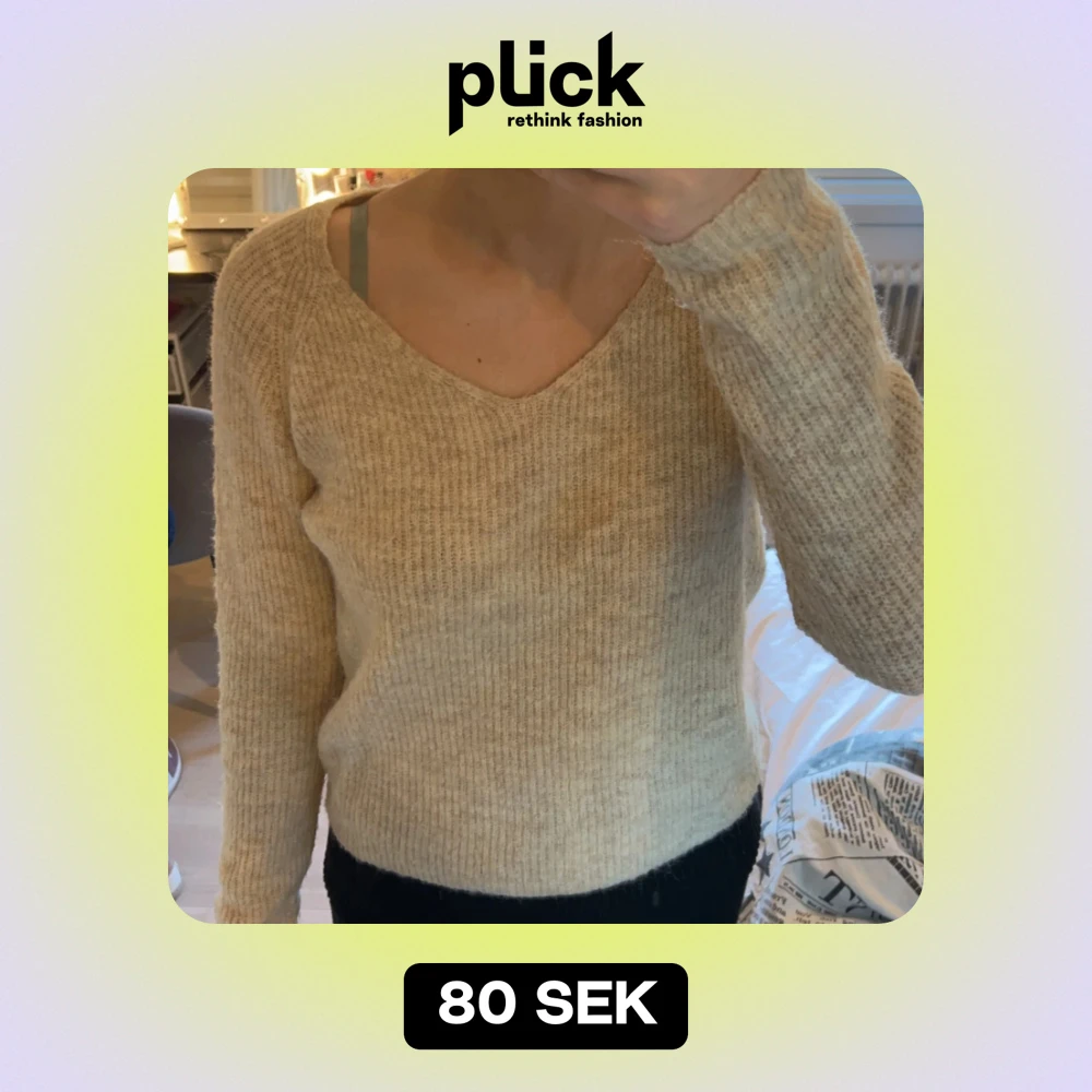 Mysig beige stickad tröja från Pieces i storlek XS. Perfekt för höst och vinter med sin varma och bekväma design. Tröjan har en v-ringad hals och långa ärmar. Passar perfekt till både jeans och kjol! Knappast använd