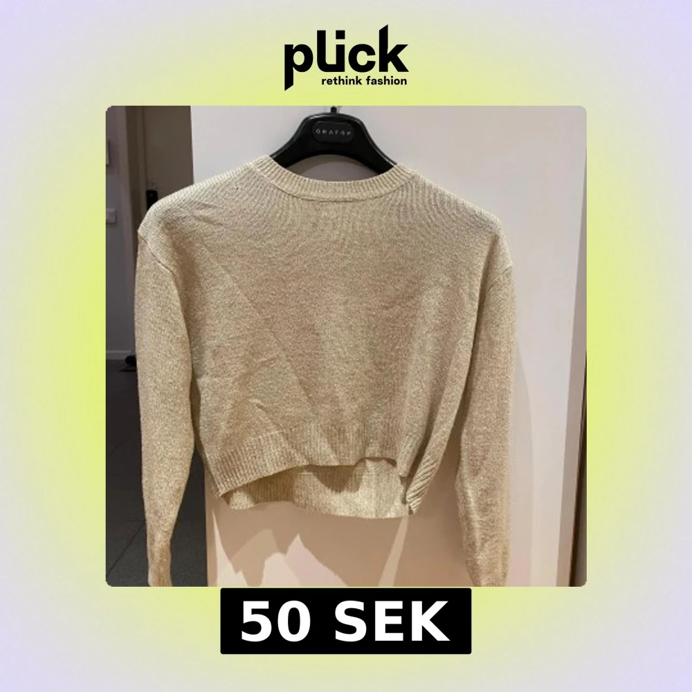 Säljer en beige stickad tröja från H&M Divided. Tröjan har en croppad design med långa ärmar och ribbade kanter. Perfekt för en stilren och bekväm look.