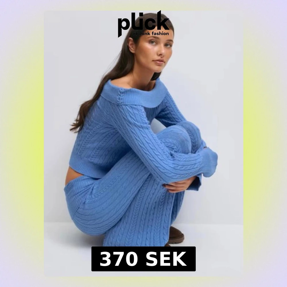 Snygg ljusblå stickad tröja med offshoulder och kabelstickat mönster. Tröjan har långa ärmar med snörning vid ärmslut och bred ribbad kant upptill. Passformen är normal och materialet känns mjukt och skönt mot huden. Perfekt för dig som gillar trendiga och bekväma plagg. Settet är jätte skön o bekväm säljer den för att jag fick två likadana presenter , den är endast testat ! Tröjan är storlek M eftersom dem är små i storleken och byxan är storlek S