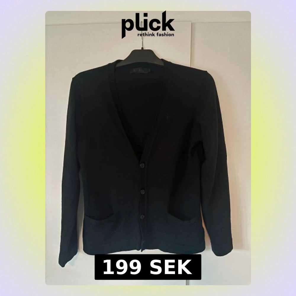 Svart finstickad Riley kofta i toppskick. I princip oanvänd. I storlek L men sitter som M. Grym passform och superfint plagg på.